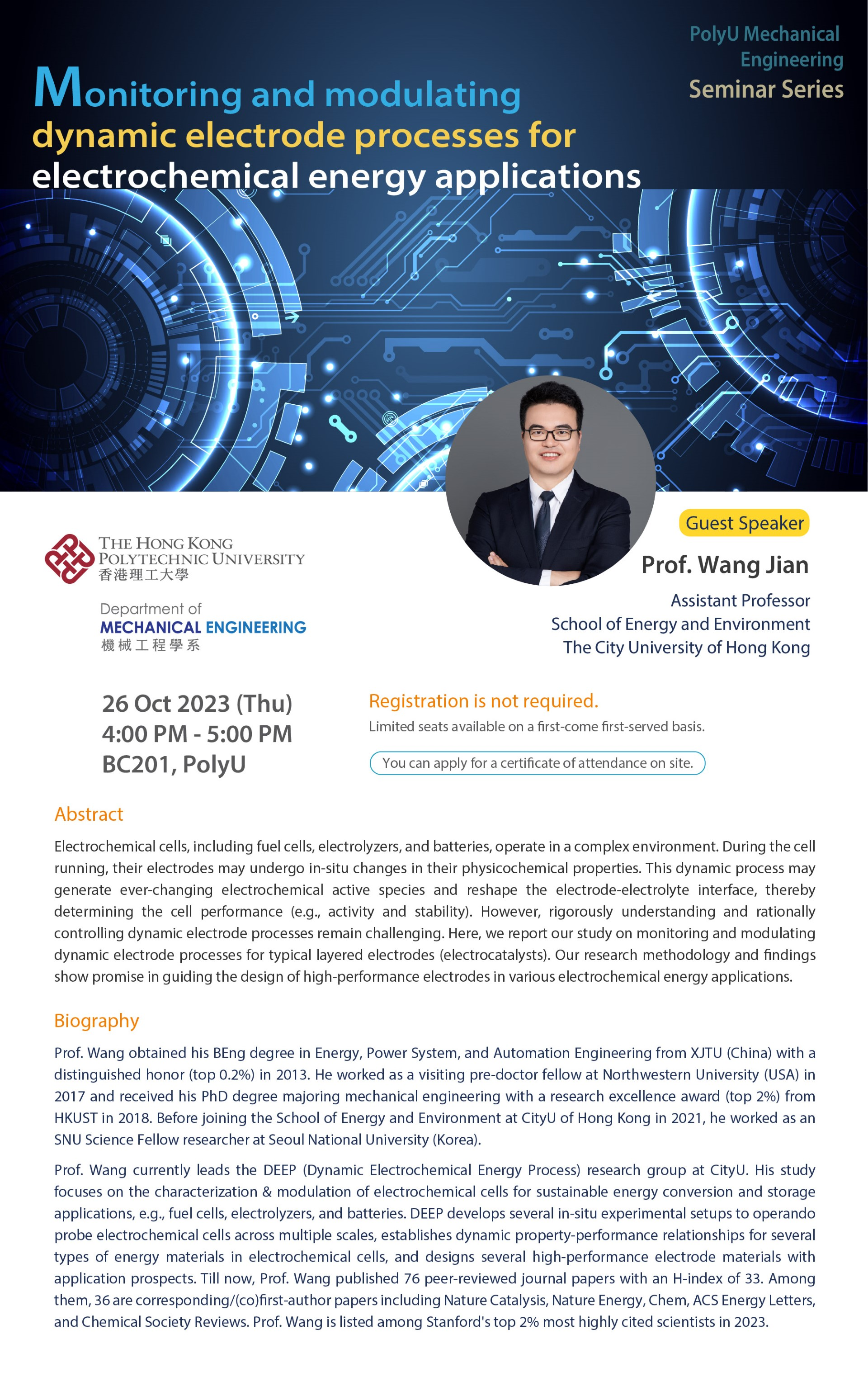On October 26, Prof. Wang was invited to attend a seminar at the Hong Kong Polytechnic University as a guest speaker. (10/2023)